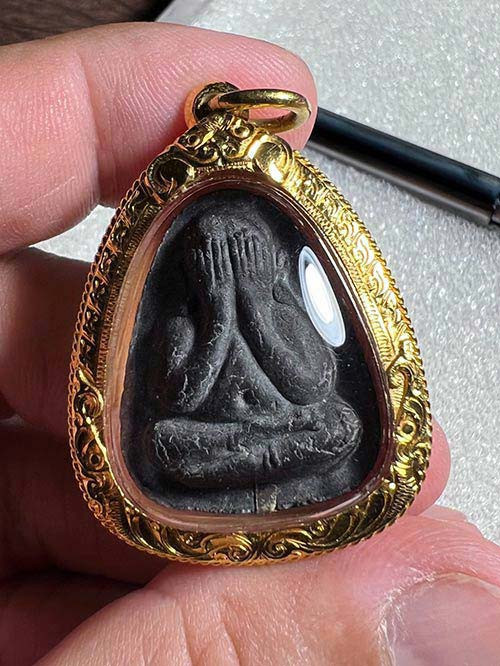 ปิดตาปลดหนี้หลังยันต์นะ ปี21 เนื้อใบลาน พร้อมเลี่ยมทองยกซุ้มหนาๆงานสั่งทำ%สูง (มีบัตรรับรองพระแท้) |