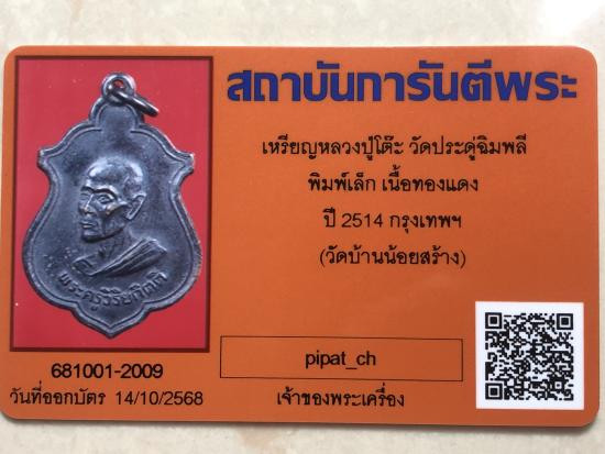 """วัดใจ"""... เหรียญหลวงปู่โต๊ะ (พิมพ์หน้าแก่) วัดบ้านน้อยสร้าง ปี2514 (พิมพ์เล็ก) ทองแดงรมดำ +บัตรรับรอง หายาก |