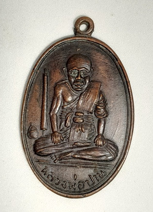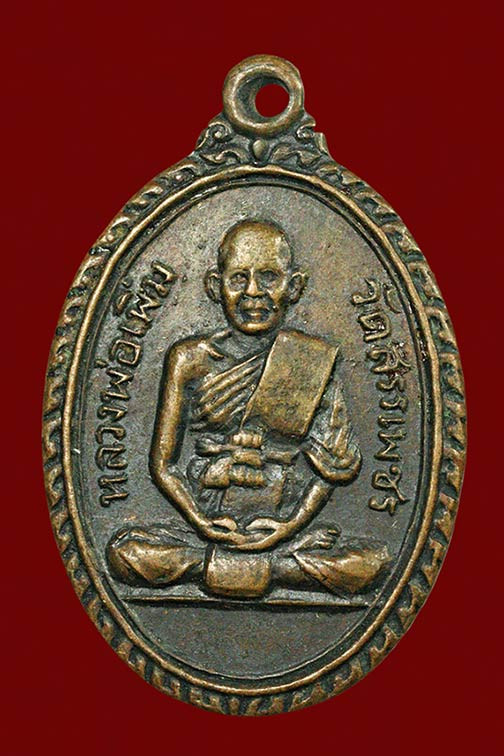 เหรียญนั่งเต็มองค์หลวงพ่อพิณ วัดอุบลวรรณาราม รุ่นแรก ปี พ.ศ. ๒๕๑๒ เนื้อทองแดง |