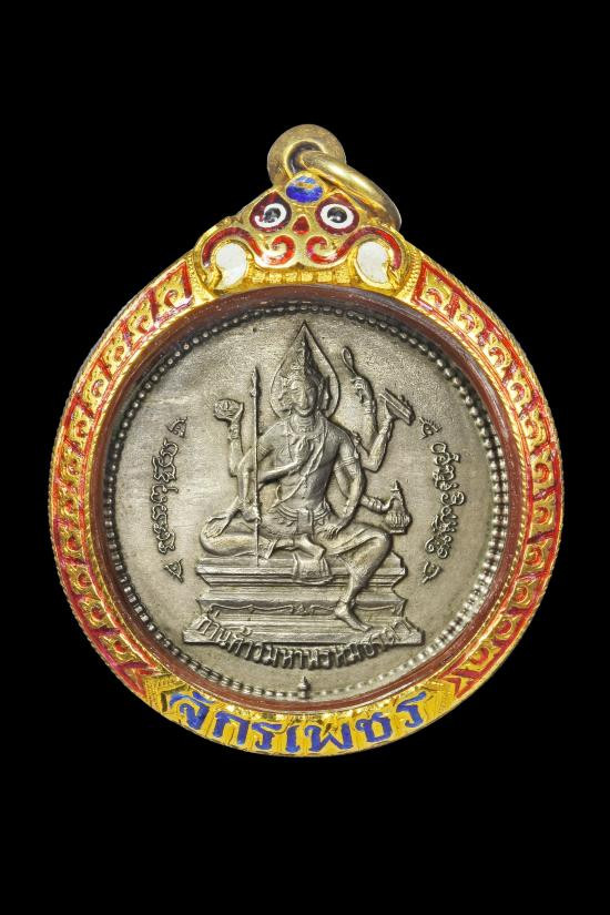 เหรียญจักรเพชร วัดดอน รุ่นแรก ปี 2508 ยานนาวา กรุงเทพฯ เนื้ออัลปาก้าผิวเดิมๆ (สภาพตัดหู) เลี่ยมทองลงยาสั่งทำแกะลาย"จักรเพชร" |