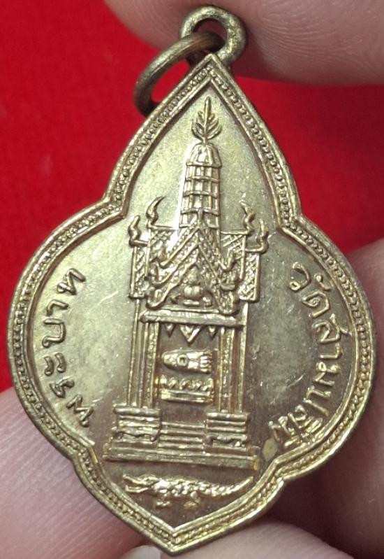 เหรียญพระพุทธไตรยรัตนนายก วัดพนัญเชิง พิมพ์วงเดือน เนื้อทองแดงกะไหล่ทอง ปี 2504 |
