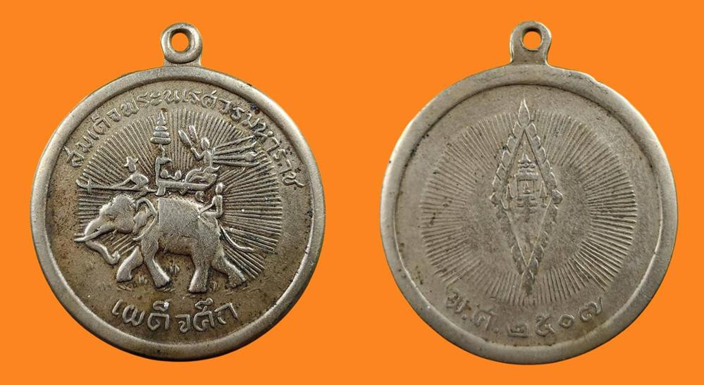 เหรียญสมเด็จพระนเรศวรมหาราช "เผด็จศึก"ปี 2507 เนื้อัลปาก้า ครับ |