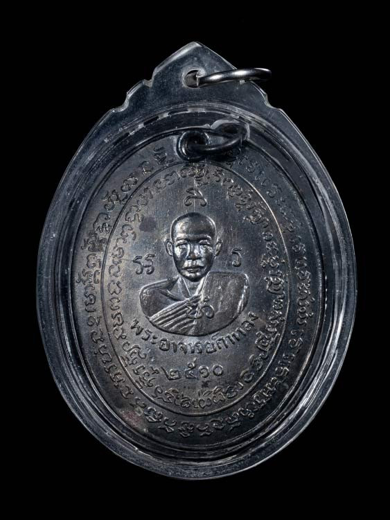 เหรียญหลวงพ่อกี๋ วัดหูช้าง จังหวัดนนทบุรี ปี พ.ศ. 2517 เนื้อทองแดงรมดำ เป็นวัตถุมงคลยอดนิยมที่มีประสบการณ์ สภาพสวย |