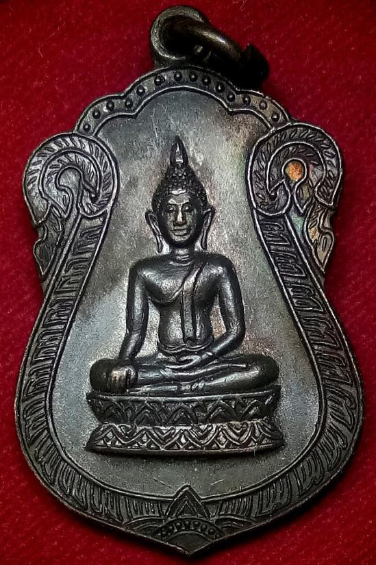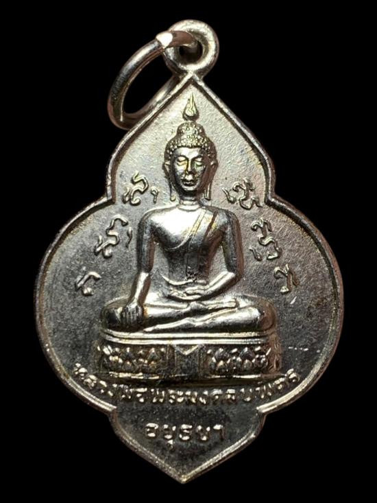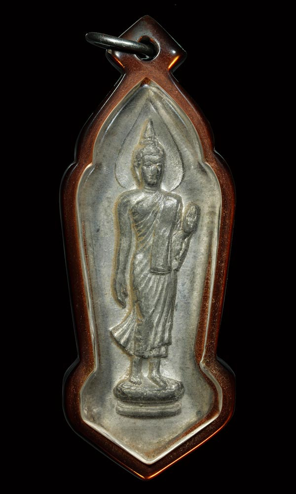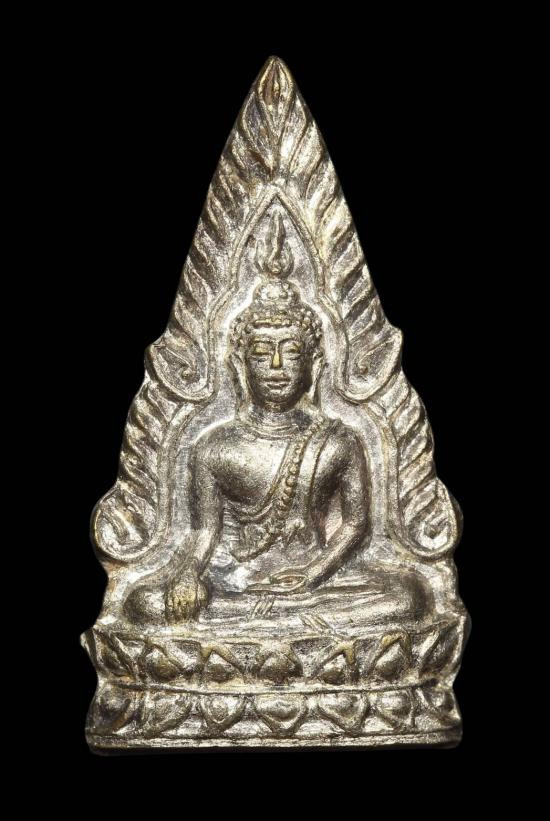 ปรกใบมะขาม รุ่นแรก หลวงพ่อนอ วัดกลางท่าเรือ พ.ศ.2513 เนื้อนวะโลหะ ตอกโค้ด |