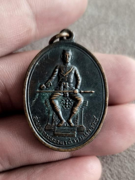 เหรียญพระบรมราชานุสรณ์สมเด็จพระนเรศวรมหาราช รุ่น "เผด็จศึก" หลัง ภปร. วัดดอนเจดีย์ ปี 2516 |