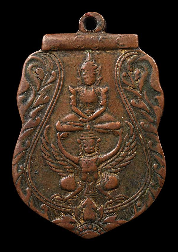 เหรียญพระแก้วทรงครุฑ หลวงพ่อเชย วัดท่าควาย เนื้อทองแดงกะไหล่ทอง ปี2468 จ.สิงห์บุรี |