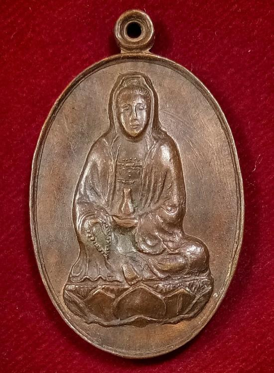 เหรียญ เจ้าแม่กวนอิม ถือปะคำ หลังยันต์ |