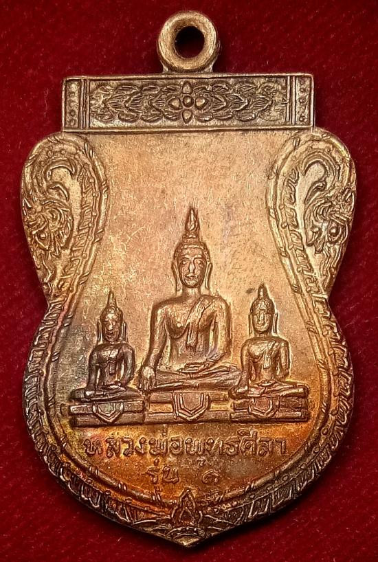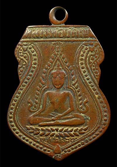เหรียญพระพุทธชินราชหลังพานพระศรีและอกเลา ปี 2496 เนื้อกะไหล่เงิน วัดพระศรีฯ จ.พิษณุโลก |