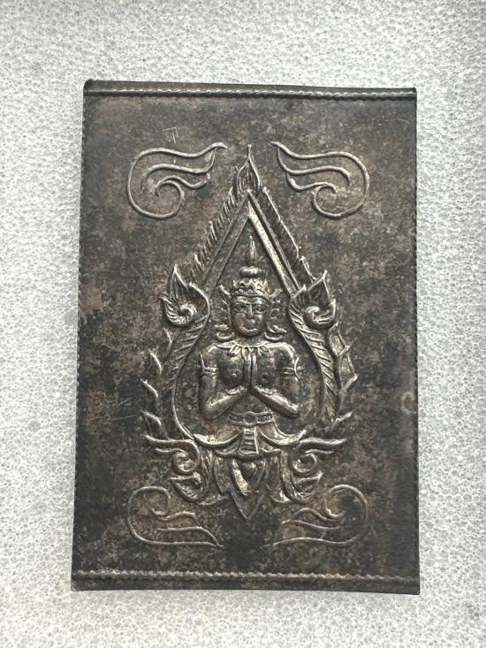 แผ่นปั้มเทพพนมมือ เนื้อเงินแท้ ไม่ทราบเกจิสร้างค่ะ |