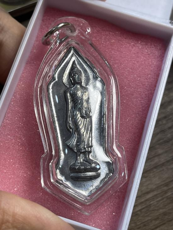 พระพุทธ 25 ศตวรรษ เนื้อชินปรอท (พิมพ์นิยม มีเข็ม) พร้อมเลี่ยมกรอบเงินแท้ งาน 92.5% ขึ้น งานมือหนึ่ง กรอบหนา รมดำ สวยๆ classic. |
