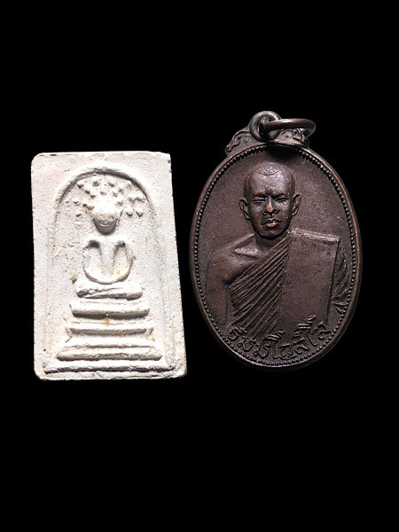 เหรียญหลวงพ่อพระครูบาง เจ้าอาวาสวัดหนองพลับ อ.หนองแซง จ.สระบุรี ปี06 + เหรียญพระพุทธนิรโรคันตรายชัยวัฒน์จตุรทิศ ปี19 เปิดศาลเจ้าพ่อหลักเมือง สระบุรี |