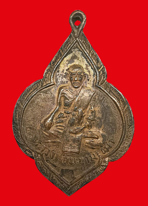 เหรียญใบโพธิ์ หลวงพ่อเนียม วัดเสาธงทอง จังหวัดลพบุรี ห่วงเหรียญเชื่อมเก่า ไม่ทราบปีสร้าง ดูจากข้างตัดน่าจะย้อนยุคใบโพธิ์รุ่นแรก |