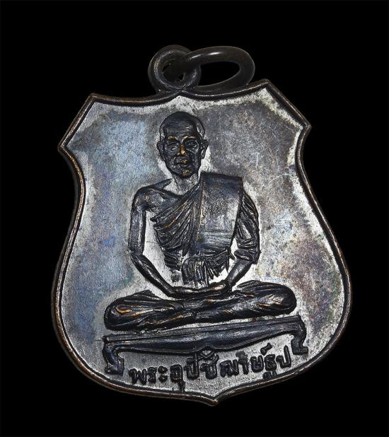 วัดใจ เหรียญนั่งเต็มองค์หลวงพ่อพิณ วัดอุบลวรรณาราม รุ่นแรก ปี พ.ศ. ๒๕๑๒ เนื้อทองแดง iมดำ |