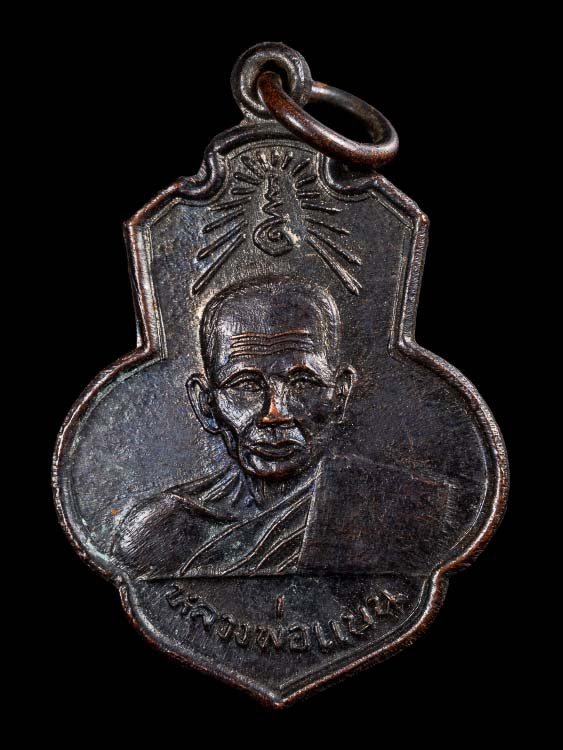 เหรียญหลวงพ่อหอม วัดชากหมาก บ้านฉาง จ.ระยอง รุ่นแรก ๒๔๙๘ บล็อกหน้าโหนก พิมพ์นิยม 4 ชาย |