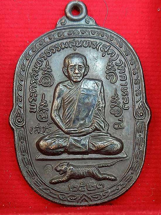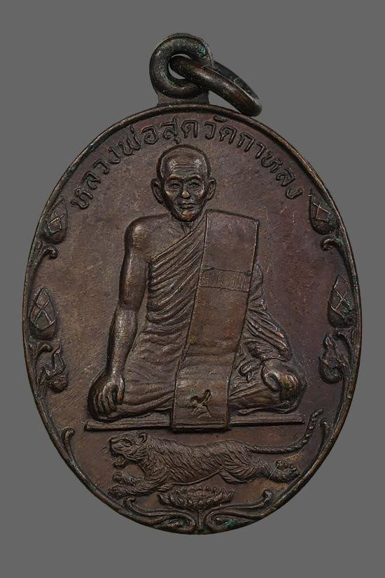 เหรียญหลวงพ่อสุด วัดกาหลง (( รุ่นปิตุภูมิ..บัวเล็ก..ขอบสตางค์ )) เนื้อทองแดง ปี 2522 ตอกโค๊ต แดง 120 |