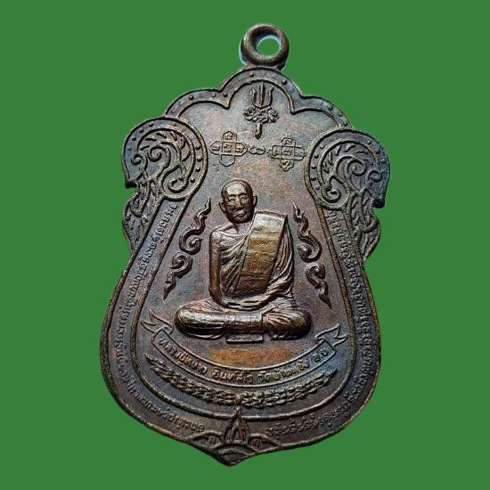. เหรียญหลวงพ่อย้อย วัดอัมพวัน จังหวัดสระบุรี รุ่นยกช่อฟ้า ปี 2519 เนื้อทองแดงกะหรั่ยเงิน |
