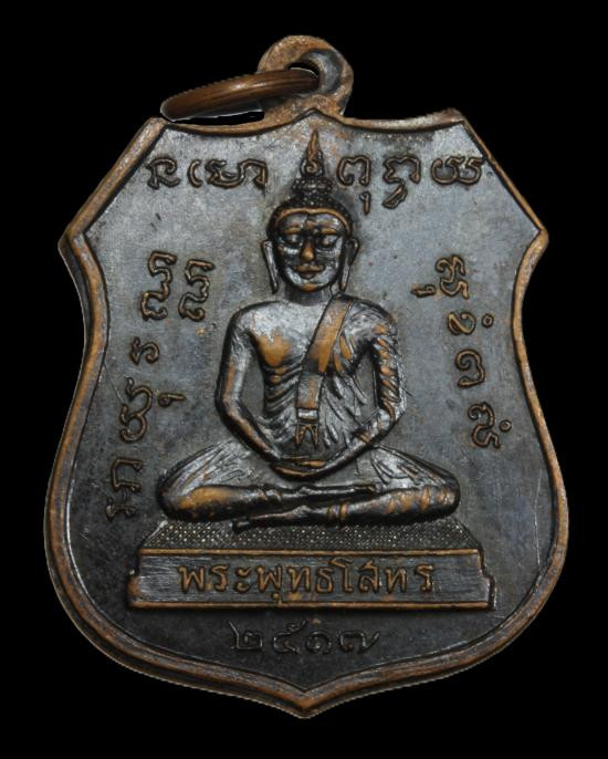 วัดใจ เหรียญนั่งเต็มองค์หลวงพ่อพิณ วัดอุบลวรรณาราม รุ่นแรก ปี พ.ศ. ๒๕๑๒ เนื้อทองแดง iมดำ |