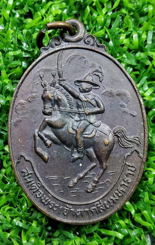 เหรียญพระเจ้าตากสินทรงม้า ณ ค่ายโพธิ์สามต้น จ.อยุธยา หลวงพ่อหน่าย วัดบ้านแจ้ง ปลุกเสก เนื้อทองแดง |