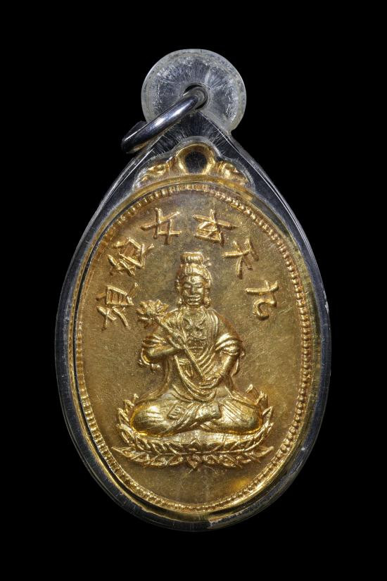 เหรียญศาลเจ้าพ่อเสือ ตั่วเหล่าเอี๊ย พระนคร ปี 2515 พิมพ์ดอกเหมย เนื้อทองคำ |