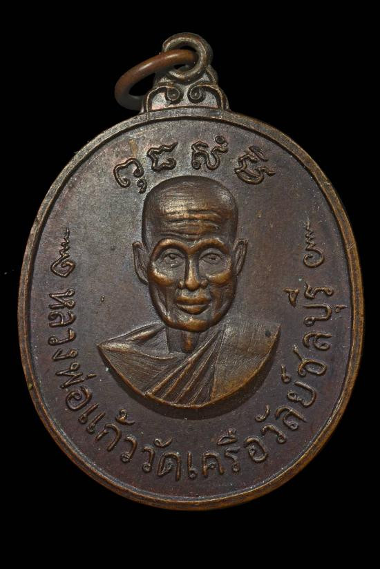 เหรียญหลวงพ่อแก้ว หลังพระปิดตา วัดเครือวัลย์ ชลบุรี ปี 2519 |