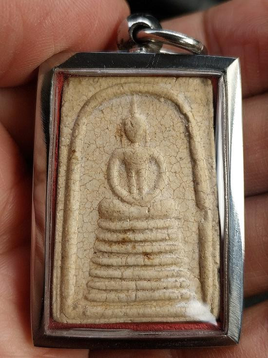 สมเด็จในย่ามพิมพ์พระนางพญา หลังใบโพธิ์หลวง ปู่สี วัดถ้ำเขาบุญนาค ปี2517 สวยเดิม |