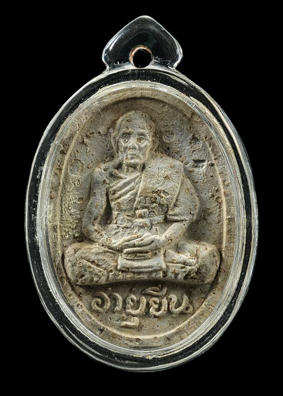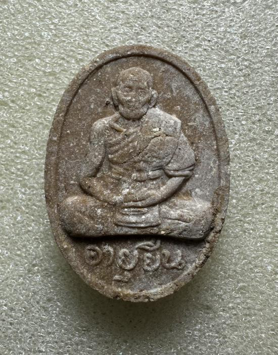 พระผงรูปเหมือนอายุยืน หลวงปู่สี วัดเขาถ้ำบุญนาค จ.นครสวรรค์ ปี ๒๕๑๗ เนื้อผงน้ำมันผสมชาญหมาก |