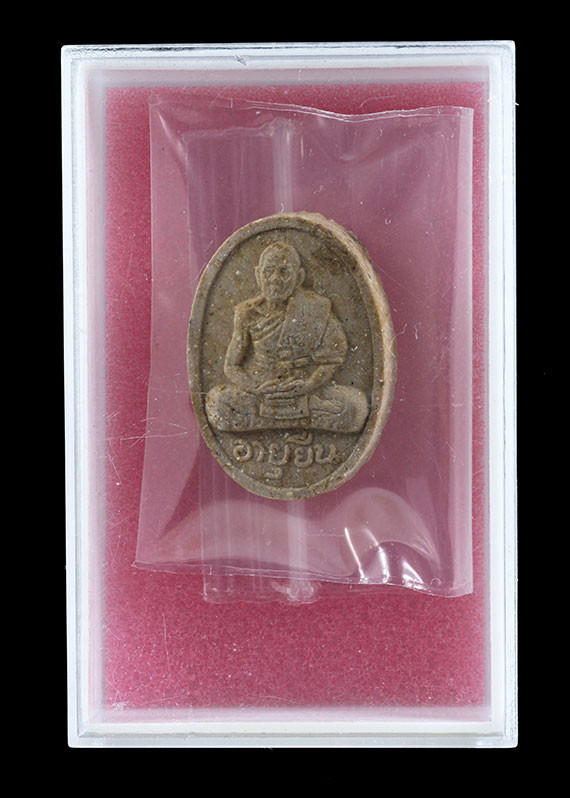100 เดียวค้บ หลวงปู่สี วัดเขาถ้ำบุญนาค เนื้อผง รุ่นอายุยืน ปี 2517 มีคราบกรุ มีรอยลาน เลี่ยมพร้อมใช้ |