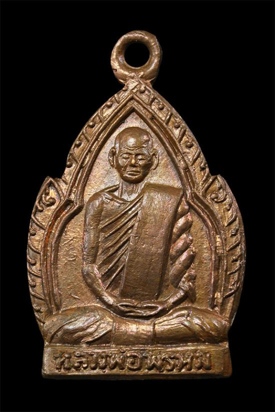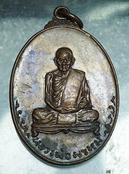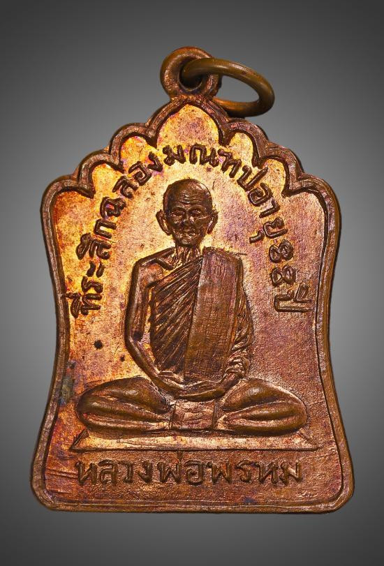 เหรียญผ้าป่า หลวงพ่อพรหม วัดขนอนเหนือ จ.อยุธยา ปี 2530 เนื้อทองแดงผิวปีกแมลงทับ พร้อมเลี่ยมเงิน สวยแชมป์ (แดง 2,500) |