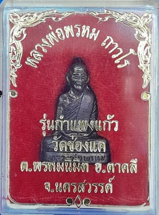 รูปเหมือนปั๊มเนื้อทองแดง หลวงพ่อพรหม วัดช่องแค จ.นครสวรรค์ รุ่นกำแพงแก้ว พร้อมกล่องเดิมจากวัด |