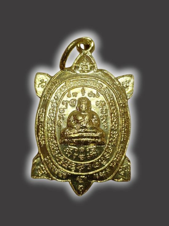 เหรียญเต่าหล่อไตรมาส หลวงปู่หลิว วัดไร่แตงทอง รุ่นบูรณะพระราชวังสนามจันทร์ ปี 2538 ทองระฆัง หลังตอกโค้ต พร้อมกล่อง |