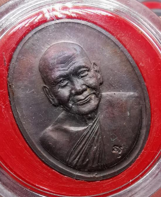เหรียญปาดตาล หลวงปู่แผ้ว ปวโร วัดรางหมัน จังหวัดนครปฐม ตอกโค๊ต เนื้อทองแดงผิวไฟปี 54 |