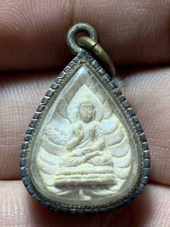พระกลีบบัวหลวงปู่บุญ เนื้อเมฆพัตร พิมพ์หลังข้าวหลามตัด สร้างราว ปี2470 พระชุดนี้เป็นพระพิมพ์มาตราฐาน |