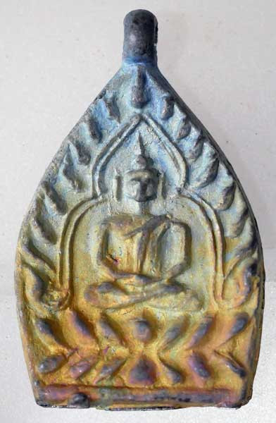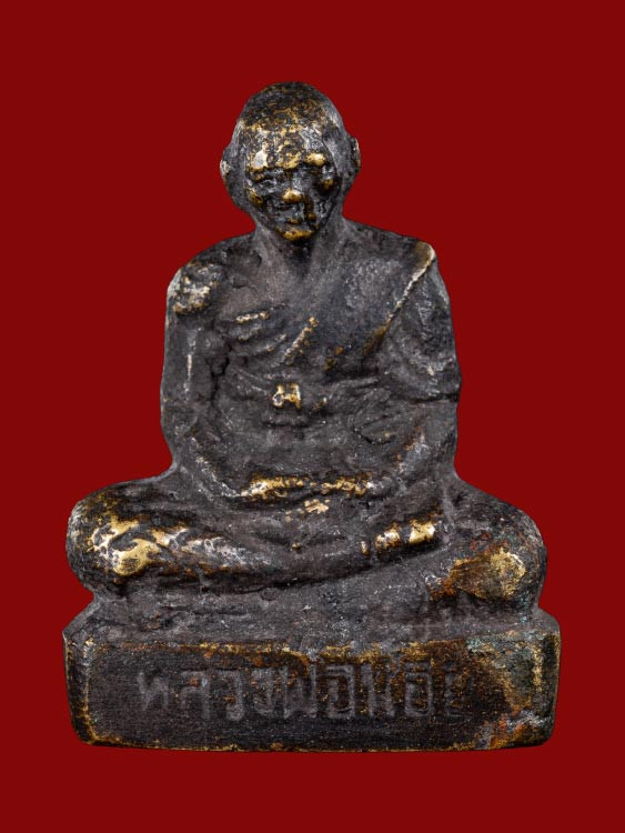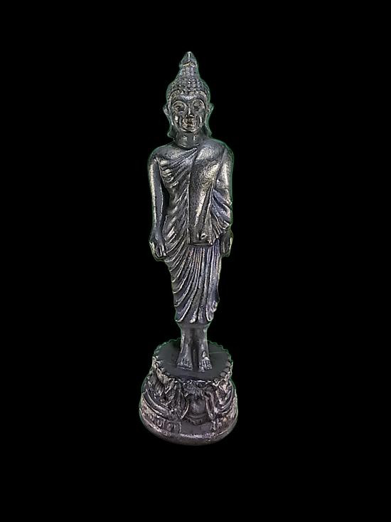 รูปหล่อ พระพุทธเจ้าเปิดโลก หลวงปู่หลิว วัดไร่แตงทอง เนื้อทองเหลืองรมดำ ปี 2539 |