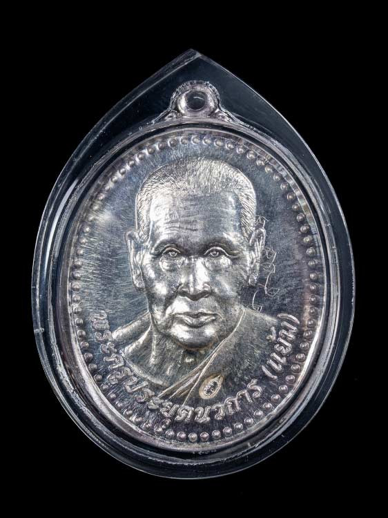 เหรียญมหาลาภหลวงปู่แผ้ว ปวโร ออกวัดสระพัง อ.กำแพงแสน จ.นครปฐม ปี2554 เนื้อเงิน |