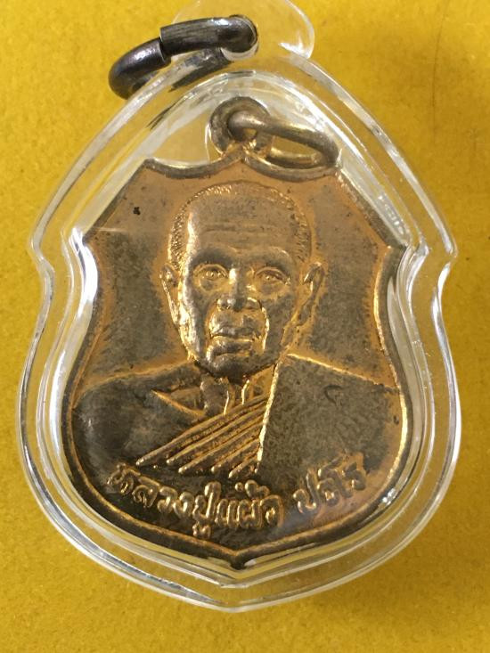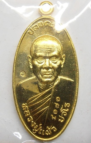 เหรียญหลวงปู่แผ้ว รุ่นใบขี้เหล็กหนุนดวง วัดเจริญราษฎร์บำรุง (วัดหนองพงนก ) จ.นครปฐม ปี ๒๕๕๑ เนื้อทองฝาบาตร |