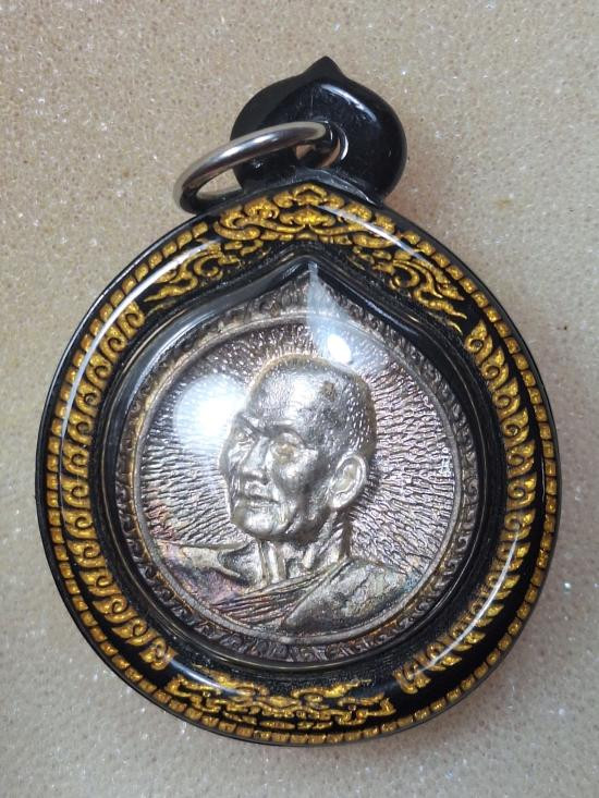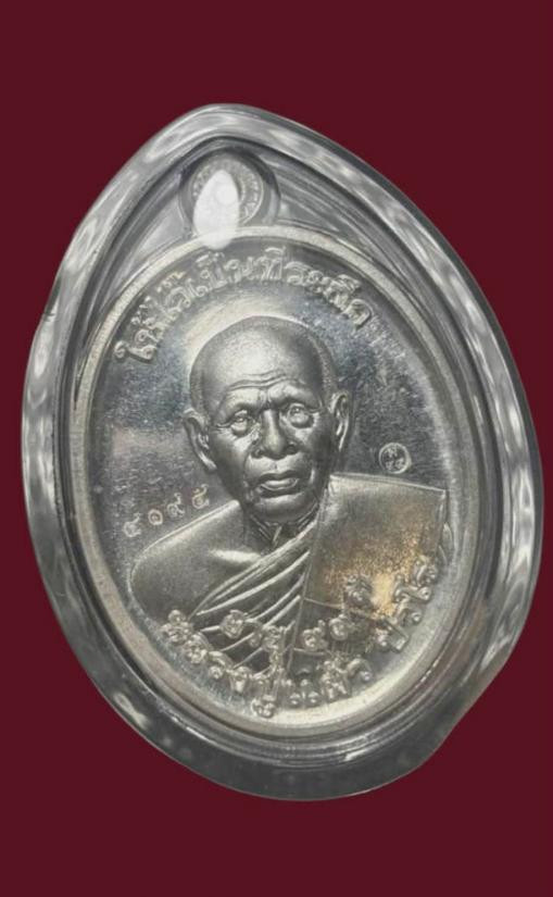 เหรียญคุ้มภัยให้รวย เนื้อเงิน หลวงปู่แผ้ว ปวโร ปี 2551 |