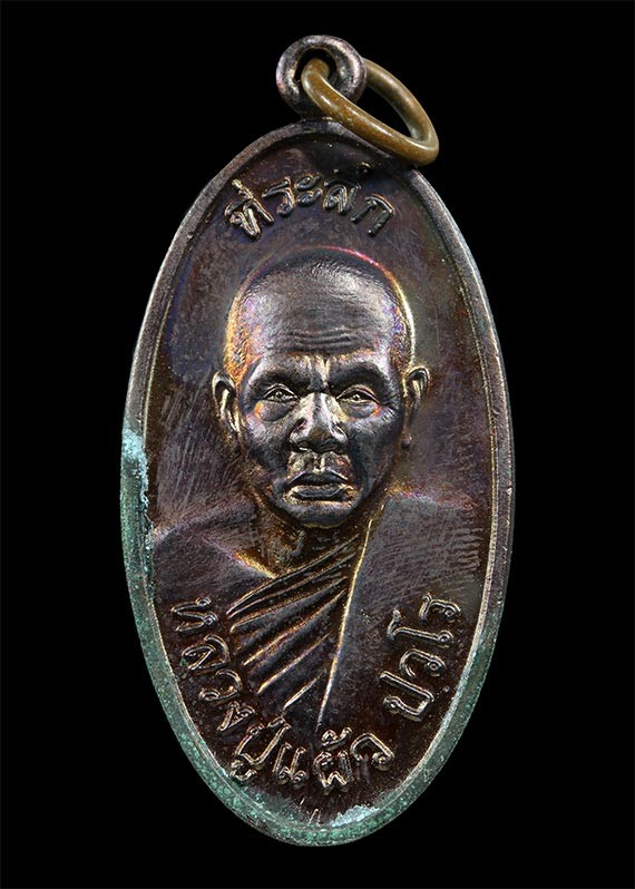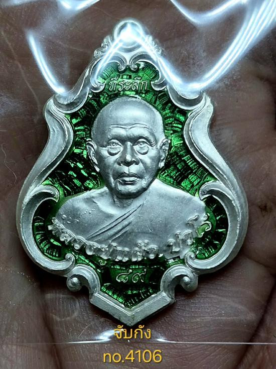 เหรียญปาดตาล หลวงปู่แผ้ว ปวโร เนื้อเงินลงยาเขียว หมายเลข 4106 |