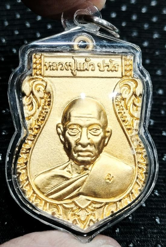 เหรียญเสมา ปี2550 ฉลองอายู ๘๕ ปี หลวงปู่แผ้ว ปวโร เนื้อกะไหล่ทองด้าน สภาพสวยเลี่ยมพร้อมใช้ ออกวัดกำแพงแสน |