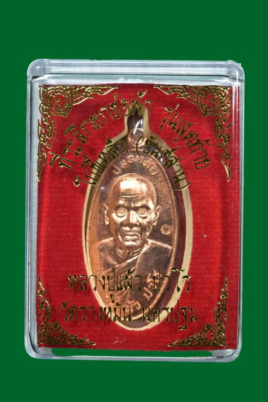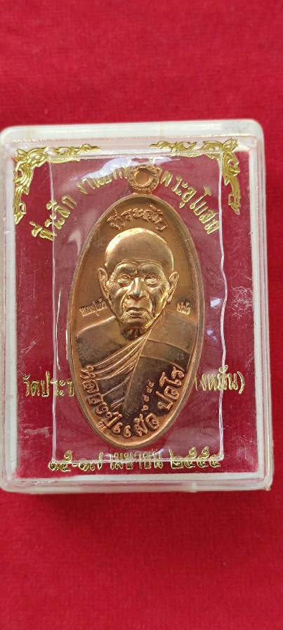 เหรียญใบขี้เหล็กหลวงปู่แผ้ว ปวโรปี54 เนื้อทองแดง หมายเลข2565 พร้อมกล่องครับ |