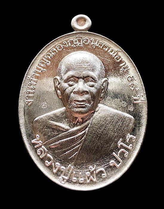 เหรียญลาภผลพูลทวี หลวงปู่แผ้ว ปวโร ปี 63 เนื้อเงิน จมูกโด่งๆ เลข1503=9 กล่องเดิมสวยๆ |