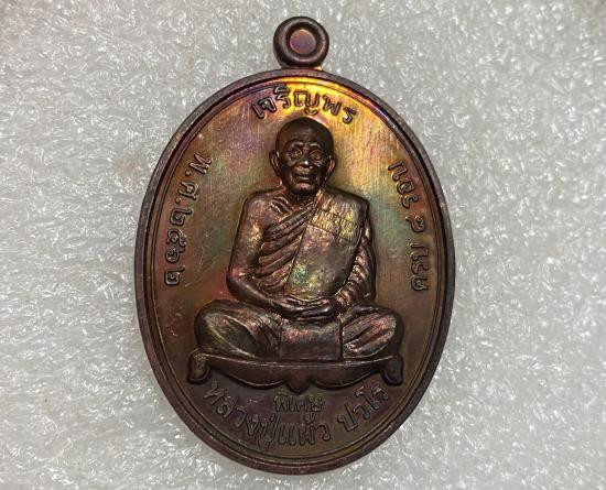 หลวงปู่แผ้ว ปวโร วัดรางหมัน เหรียญรุ่น เจริญพรบน วาระ 8 รอบ (เนื้อทองเเดงผิวรุ้ง) |