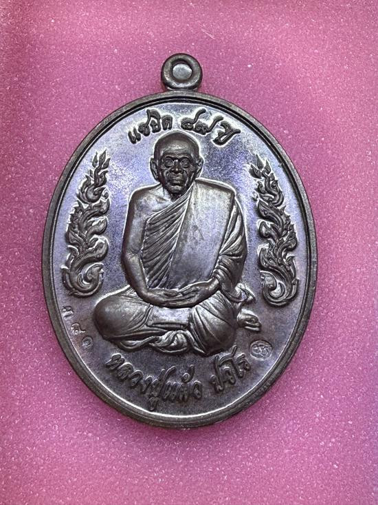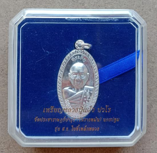 "เหรียญขวัญถุง ๙๙ ที่ระลึก อายุ ๙๙ ปี หลวงปู่แผ้ว ปวโร วัดรางหมัน เนื้อเงิน + เลี่ยมเงิน สภาพสวยครับ |