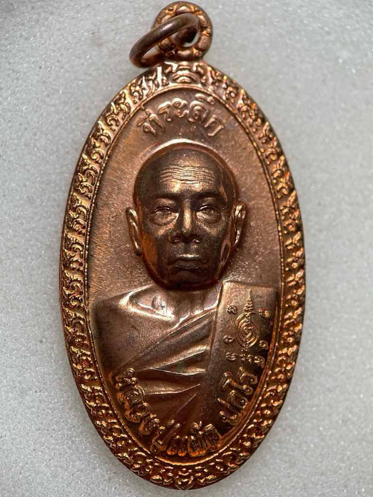 เหรียญเจริญพรบน สมปรารถนา เนื้อทองฝาบาตร กรรมการพิเศษ 9 โค๊ต ติดจีวรหลวงปู่แผ้ว ปวโร ออกวัดหนองพงนก |