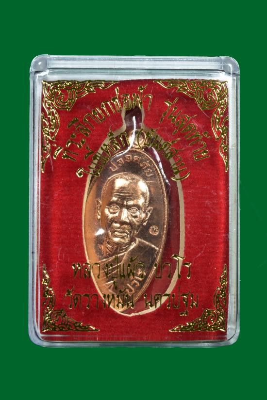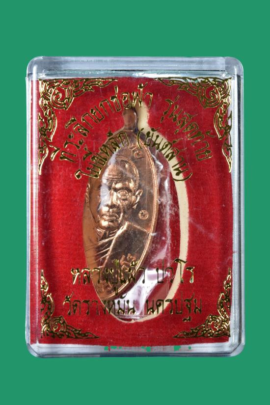 เหรียญปราบไพรี หลังหนุมานเชิญธง หลวงปู่แผ้ว ปวโร วัดรางหมัน เนื้อทองแดง ปี2554 จ.นครปฐม |