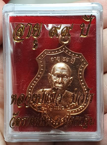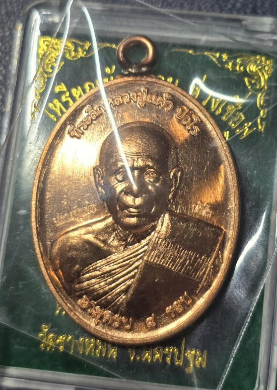 เหรียญโล่รุ่นอายุ 99 ปี เนื้อทองแดง หลวงปู่แผ้ว ปวโร วัดรางหมัน |