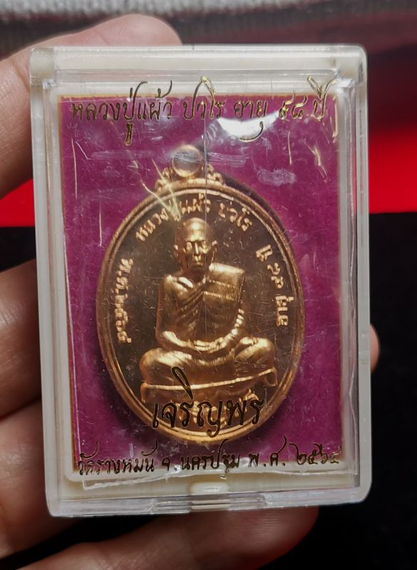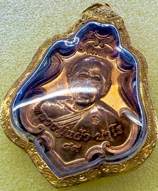 เหรียญปาดตาล หลวงปู่แผ้ว ปวโร ปี2554 พร้อมเลี่ยมทองค่ะ |