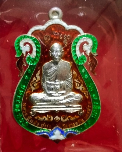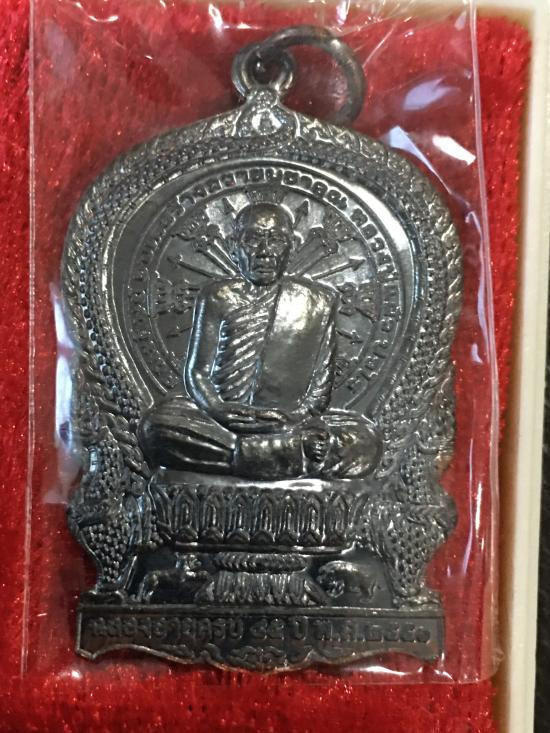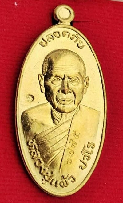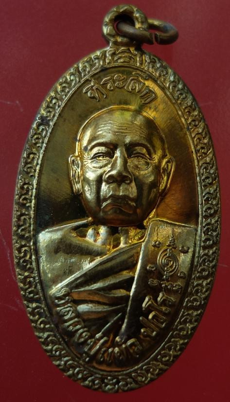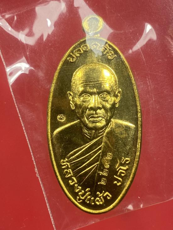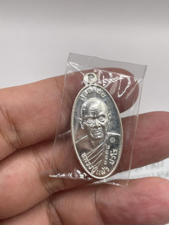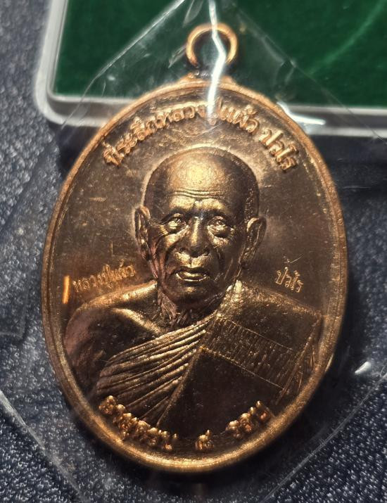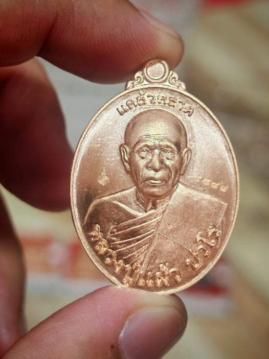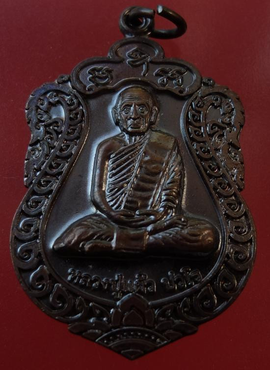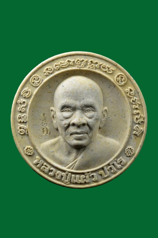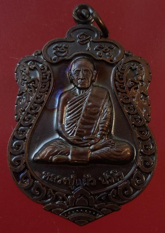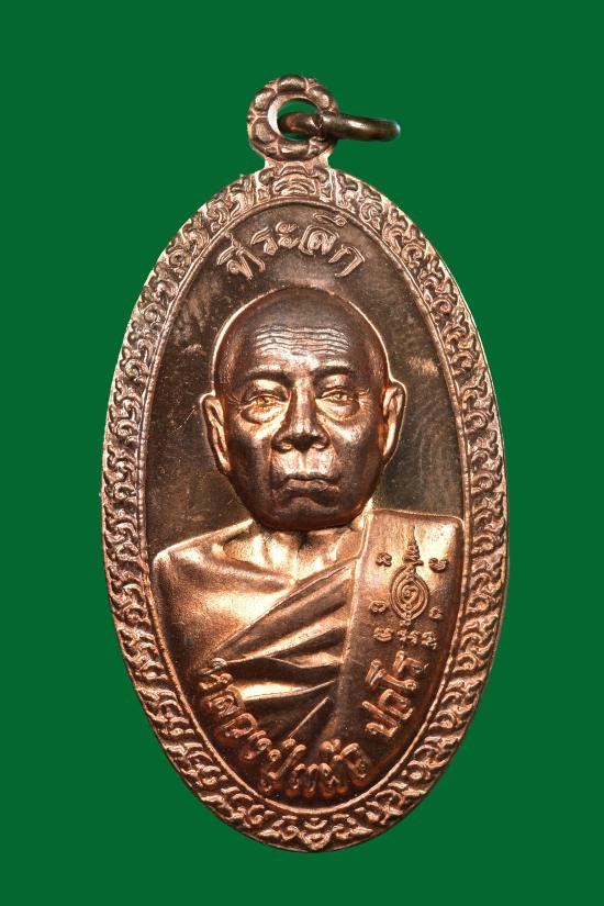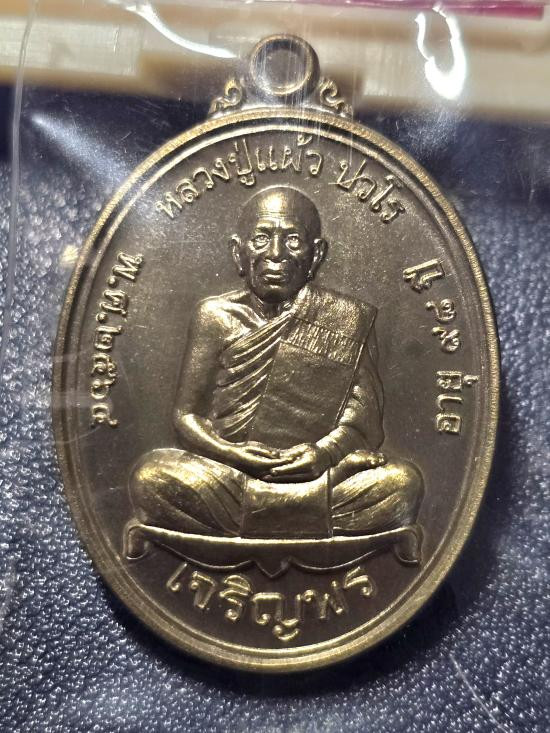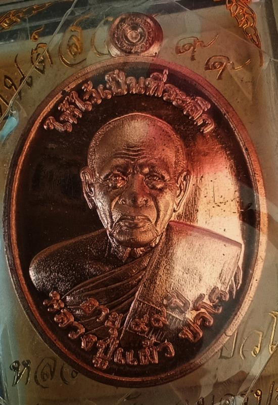 เหรียญนั่งพาน หลวงปู่แผ้ว ปวโร ฉลองอายุ 85 ปี เนื้อทองแดง วัดรางหมัน ปี 51 |