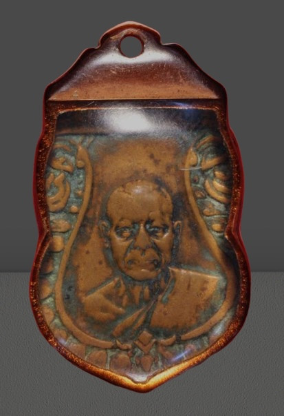 ใบขี้เหล็ก รุ่นแรก หลวงปู่แผ้ว เนื้อทองแดง ปี 2547 ผิวสวยดำๆเดิมๆ พร้อมบัตรรับรอง |