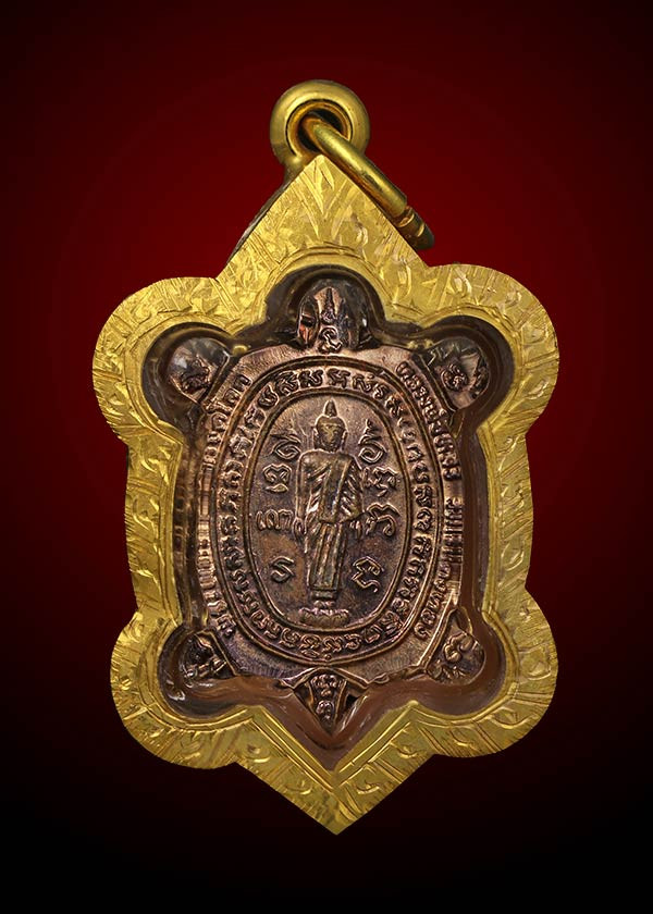 เหรียญพระพุทธปางเปิดโลก หลวงปู่หลิว วัดไร่แตงทอง พิมพ์จิ๋ว(บล็อคทองคำ) ปี 2539 เนื้อทองแดง พร้อมเลี่ยมทองคำ |