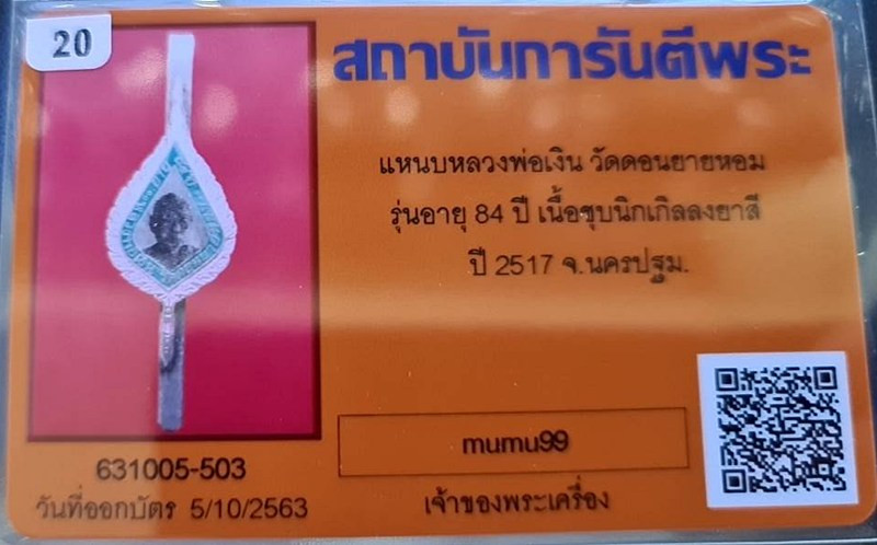 หลวงพ่อเปิ่น วัดบางพระ พ.ศ.2535 เนื้อเงิน สภาพสวยตามรูป |